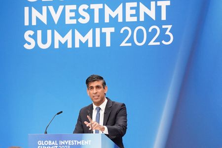 HAMPTON COURT, England (Reuters) -Prime Minister Rishi Sunak announced 29.5 billion pounds ($36.8 billion) of private sector investment in Britain at a gathering of global executives on Monday aimed at catapulting the country back to Europe’s top spot as a destination for foreign money.