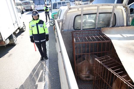 SEOUL (Reuters) – About 200 South Korean farmers who breed and raise dogs for human consumption held a rally on Thursday near the presidential office in the capital Seoul, demanding the government scrap a plan to ban the controversial centuries-old practice.