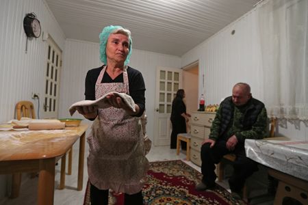 Alvina, a grandmother aged 65, has become the family’s main breadwinner, earning a little money selling homemade “jingalov hats” or “green bread”, a flatbread stuffed with herbs that is a staple for Karabakh Armenians.