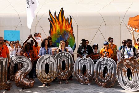 DUBAI (Reuters) – Climate activists staged several small protests at COP28 on Tuesday against the presence of the oil, gas and coal industry at the U.N. climate summit and demanded an end to the use of fossil fuels, the major source cause of climate change.