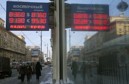 MOSCOW (Reuters) – Russia’s finance ministry said on Tuesday it would decrease the volume of deferred foreign currency purchases in the coming month by more than 2-1/2 times to a cumulative total of 244.8 billion roubles ($2.68 billion).