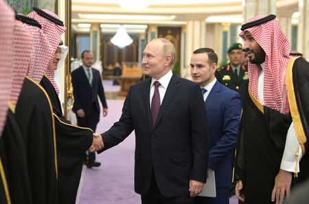 RIYADH (Reuters) -Russian President Vladimir Putin on Wednesday had hastily arranged talks with Saudi Crown Prince Mohammed bin Salman on oil, Gaza and Ukraine, hours after visiting Saudi Arabia’s Gulf neighbour, the United Arab Emirates.