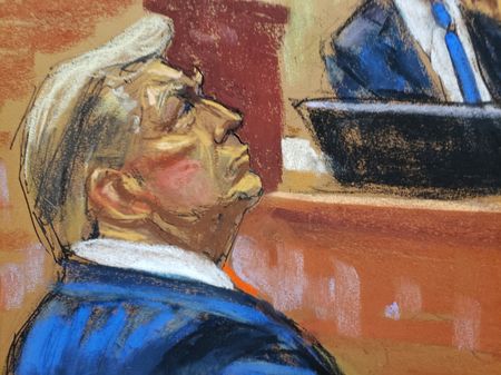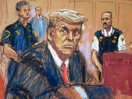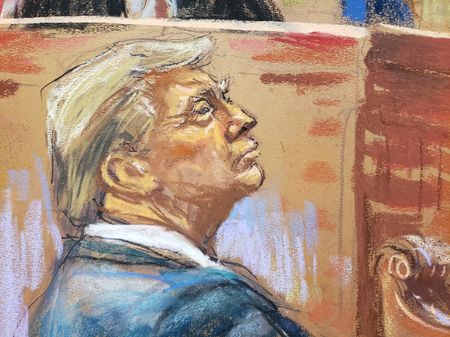 NEW YORK (Reuters) – A courtroom portrait led Donald Trump to deliver a blunt self-assessment on Thursday: “I gotta lose some weight.”