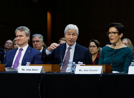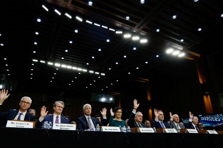 WASHINGTON (Reuters) -The top bosses of JPMorgan, Morgan Stanley, Goldman Sachs and other major banks warned on Wednesday that capital hikes and other new rules will hurt lending and the economy during a Senate hearing that was otherwise sedate compared with recent years.