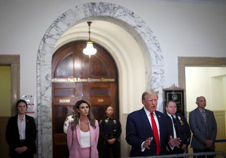 NEW YORK (Reuters) -Donald Trump arrived at a New York court on Thursday to attend his ongoing civil fraud trial, where his defense team is arguing that the former U.S. president’s family company did not manipulate the value of its properties to win favorable financing.