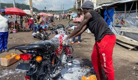 Yassin makes about $2 a day washing motorbikes, which he uses to buy soap and simple foods. But he wishes he was back picking potatoes in his village of Kibumba.