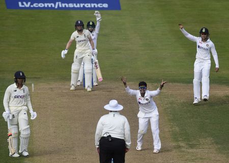 (Reuters) – India’s Deepti Sharma was the thorn in England’s flesh yet again after the feisty spinner captured five wickets for seven runs in an extraordinary spell to bundle out the tourists for 136 in their one-off test match in Navi Mumbai on Friday.
