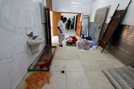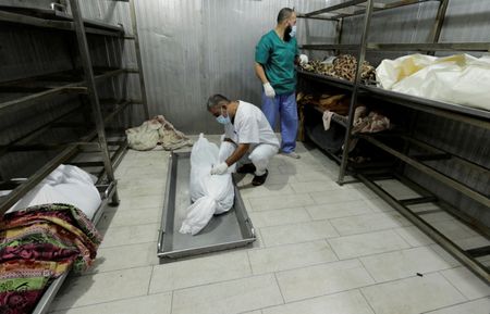 GAZA/LONDON (Reuters) -In the morgue of the Nasser Hospital, in southern Gaza, workers wrap the corpses of people killed in Israeli airstrikes in white cloth amid the stench of death.