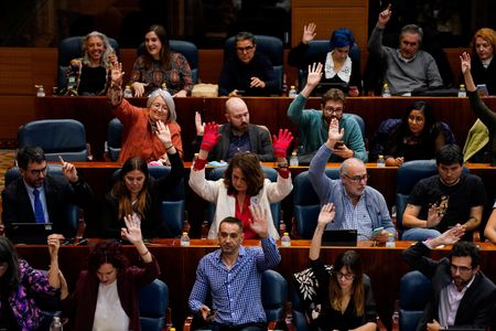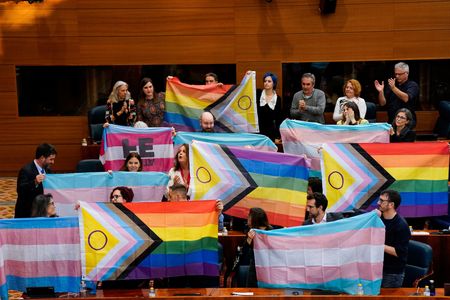 MADRID (Reuters) – Madrid’s regional assembly on Friday passed a proposal by the Spanish capital’s ruling conservative People’s Party (PP) to strip back protections for transgender people, sparking outcry from the opposition and LGBTQ activists.