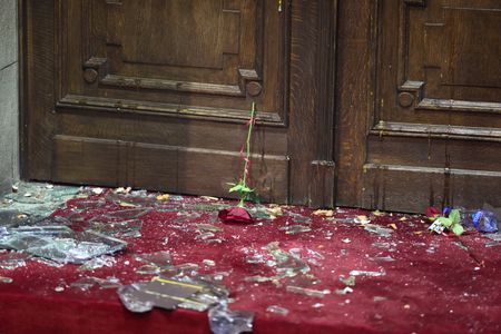 Protesters on Sunday broke windows and glass at the main entrance of the town hall, before police used pepper spray to disperse them around 10 p.m.
