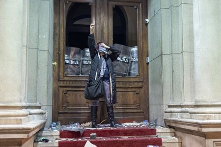 BELGRADE (Reuters) -Several thousand people gathered in front of the central election commission building in Belgrade on Monday to protest over an election earlier this month that international monitors said was unfair.