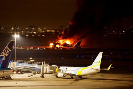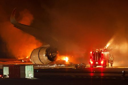 TOKYO (Reuters) – All 379 people aboard a Japan Airlines (JAL) plane escaped the burning airliner after a collision with a Coast Guard aircraft at Tokyo’s Haneda airport that killed five of six crew on the smaller aircraft on Tuesday.
