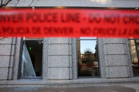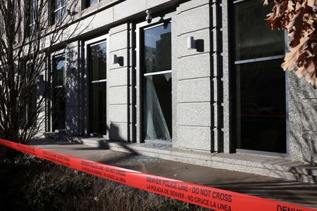 Carr Colorado Judicial Center in downtown Denver and shot out a window.