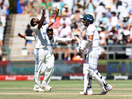 India seamer Jasprit Bumrah took 6-61 to bowl South Africa out for 176 in their second innings on the stroke of lunch on the second day, before the visitors came out swinging and completed the win in 12 overs as they reached 80 for three.