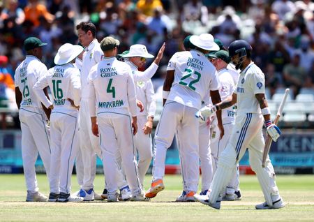 CAPE TOWN (Reuters) – India chased down a modest victory target of 79 to claim a seven-wicket win over hosts South Africa in the second test at Newlands on Thursday and share the two-match series 1-1 after an extraordinary game finished inside five sessions.