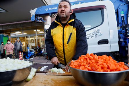 WAJIMA, Japan (Reuters) – On a chilly Friday morning in the quake-hit Japanese town of Wajima, Aydin Muhammet and his employees served steaming bowls of soup and rice in front of a community centre for evacuees.