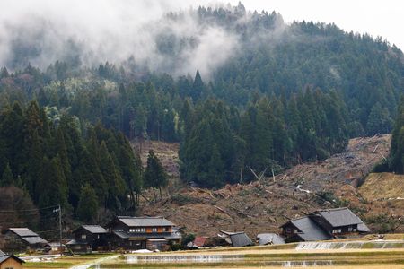 Footage on national broadcaster NHK showed construction trucks digging through piles of dirt three meters (almost 10 ft)tall to unearth houses buried by landslides.