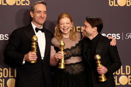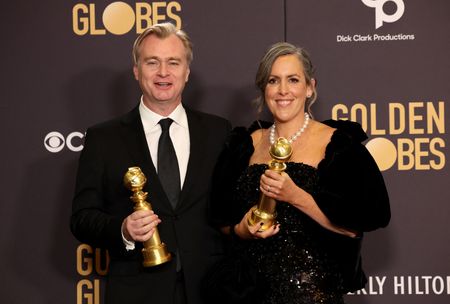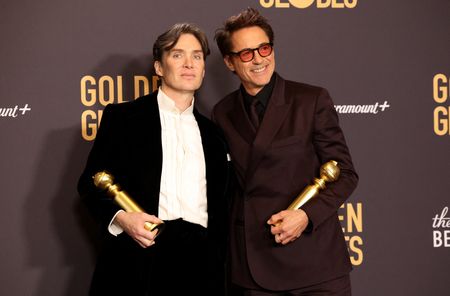 BEVERLY HILLS, California (Reuters) -Historical drama “Oppenheimer” dominated the Golden Globe awards on Sunday, and gothic comedy “Poor Things” upset summer blockbuster “Barbie,” as Hollywood threw its biggest party since labor disputes shut down much of show business last year.