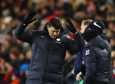 MIDDLESBROUGH, England (Reuters) -Chelsea suffered a surprise 1-0 loss at second-tier Middlesbrough in the first leg of their League Cup semi-final on Tuesday with Hayden Hackney’s goal giving Mauricio Pochettino’s wasteful side plenty to do in the return.