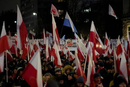 WARSAW (Reuters) -Tens of thousands of opposition supporters massed outside Poland’s parliament on Thursday to protest against the new government’s changes to state media and the imprisonment of two former ministers convicted of abuse of power.