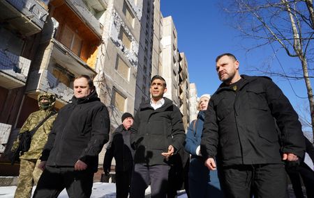 KYIV (Reuters) – British Prime Minister Rishi Sunak visited wartime Kyiv on Friday to sign a new security agreement and announce an increase in military funding for Ukraine to buy drones, including surveillance, long-range strike and sea drones.