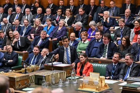 LONDON (Reuters) -British Prime Minister Rishi Sunak’s Conservative Party is set for an electoral defeat on a par with its heavy loss to the Labour Party in 1997, according to a YouGov opinion poll published in the Telegraph newspaper.