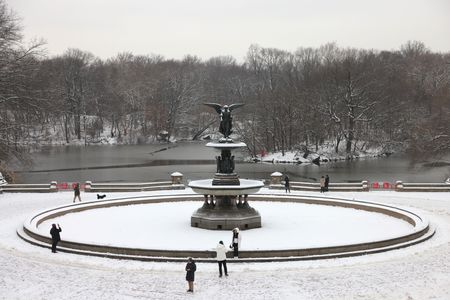 Manhattan’s Central Park was covered by 1.4 inches (3.6 cm) as of Tuesday morning, ending a “snow drought” of 701 days without more than a dusting.