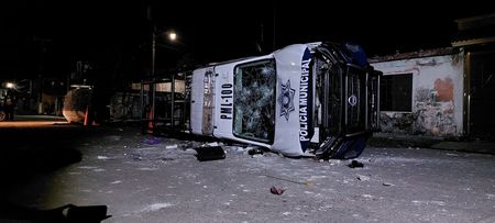 LERDO DE TEJADA, Mexico (Reuters) – Residents of a Mexican town set fire to the municipal palace overnight on Friday in a violent protest after local police shot a young man in the neck, according to his relatives, after he did not stop his car at a checkpoint.
