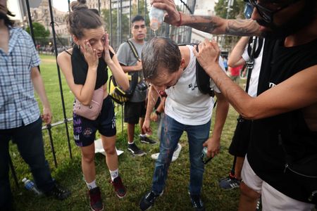 Over the past few days, flag-waving protesters opposed to Milei’s reforms have clashed repeatedly with riot police deployed outside the green-domed neoclassical congressional building, at times hurling rocks at them.