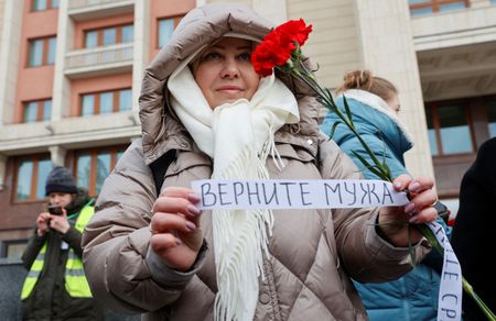 MOSCOW (Reuters) – Around 20 journalists were detained by police in central Moscow for several hours on Saturday at a rally of Russian soldiers’ wives calling for their men to be returned from the front in Ukraine, a Reuters witness said.