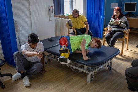 He has received prosthetic legs, and in hospital he practises taking steps and doing exercises to build his strength.