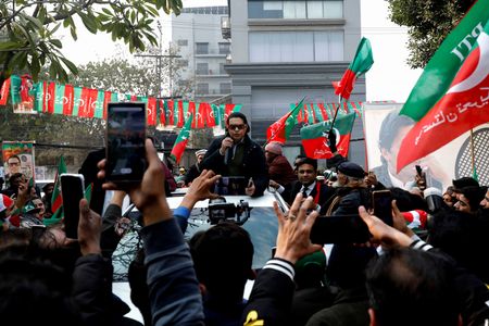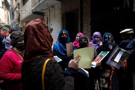 LAHORE/KARACHI, Pakistan (Reuters) – Days before Pakistan’s Feb. 8 election, a masked and headscarf-clad Komal Asghar led a team of similarly dressed women through alleys in the eastern city of Lahore.