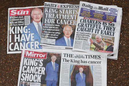 LONDON (Reuters) – King Charles smiled and waved to passers-by on Tuesday as he was seen in public for the first time since it was revealed he was suffering from a form of cancer and as his estranged younger son Prince Harry flew to Britain to see him.