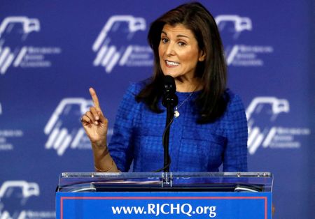 (Reuters) -Republican presidential candidate Nikki Haley suffered an embarrassing defeat in Nevada’s primary on Tuesday, finishing behind ballots marked “none of these candidates” by supporters of Donald Trump, according to Edison Research.