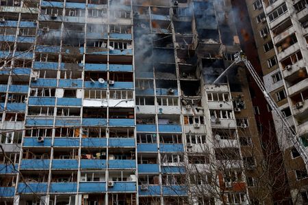 KYIV (Reuters) -Russia launched missile strikes on Kyiv and other Ukrainian cities during Wednesday morning’s rush hour, killing three people, injuring at least a dozen more and setting blazes across the capital, Ukrainian officials said.