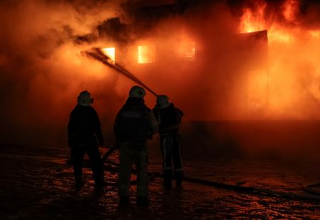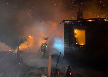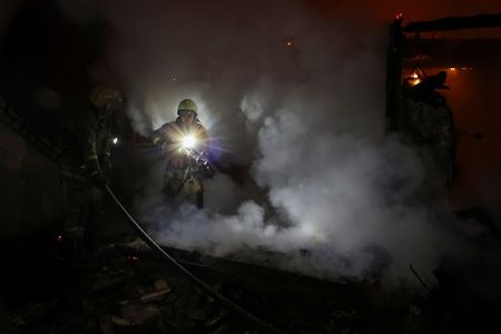 KYIV (Reuters) -A Ukrainian prosecutor, her husband, and their three small children were among seven people killed after a Russian drone attack on the northeastern city of Kharkiv hit an oil depot, triggering blazes that burned half a street to the ground, officials said on Saturday.