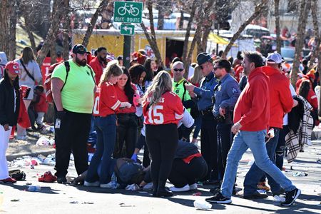 (Reuters) -A barrage of gunfire erupted on Wednesday in downtown Kansas City, Missouri, near an outdoor celebration of the NFL champion Chiefs’ Super Bowl victory, killing at least one person and wounding 21 others as throngs of fans scurried for safety.