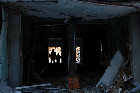 Standing near her own badly damaged apartment building, Popova, who advises regional officials on humanitarian affairs, explained why hallways and bathrooms offer the best protection locals can hope for when hiding from air strikes.