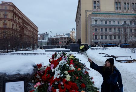 MOSCOW (Reuters) -The hundreds of flowers and candles laid in Moscow on Friday to honour the memory of Alexei Navalny, Russia’s most prominent opposition leader, were taken away overnight in black bags.
