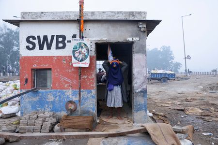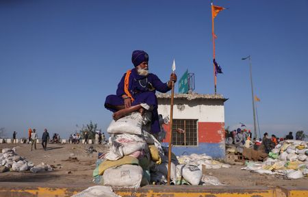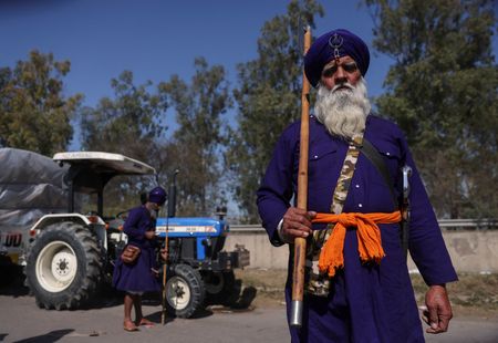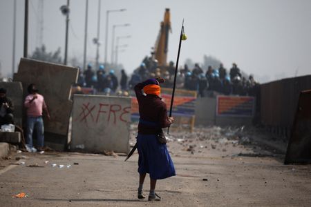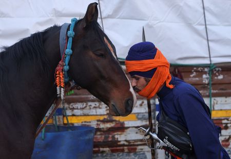 SHAMBHU, India (Reuters) – Thousands of protesting Indian farmers facing off with security forces have come under the protection of the Nihang Sikhs, a warrior sect dating back to the 1600s distinguished by their ink-blue robes and ancient weapons such as swords and spears.