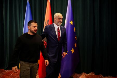 TIRANA (Reuters) -President Volodymyr Zelenskiy tried to drum up Balkan support for his vision of peace in Ukraine and promoted the idea of joint arms production at a two-day summit of southeastern European countries on Wednesday.