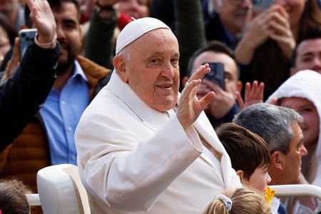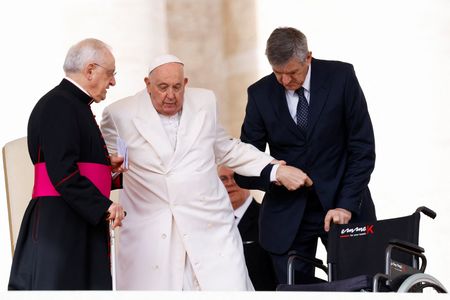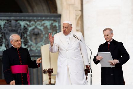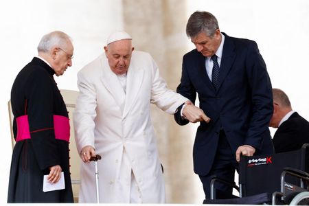VATICAN CITY (Reuters) -Pope Francis on Wednesday said he was still suffering from a cold as he again limited his speaking at a weekly audience in St Peter’s Square, instead letting an aide read his prepared text.