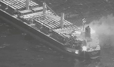 LONDON (Reuters) -India’s navy evacuated all 20 crew from a stricken vessel in the Red Sea on Thursday, after a Houthi attack killed three seafarers in the first civilian fatalities from the Yemeni group’s campaign against the key shipping route.