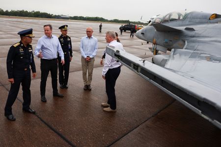 Cameron was in Nakhon Ratchasima in northeastern Thailand inspecting Gripen fighter jets built by Sweden’s Saab in collaboration with British firms.