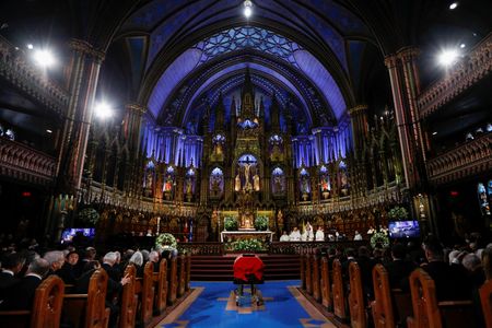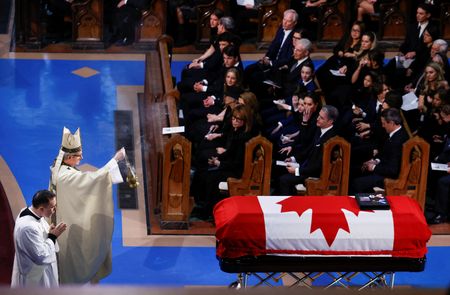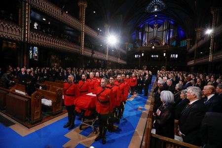MONTREAL (Reuters) – Canada’s dignitaries, political elite, and other well-wishers gathered at Montreal’s Notre-Dame Basilica on Saturday to pay final respects at the state funeral of former Canadian prime minister Brian Mulroney, who died on Feb.