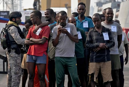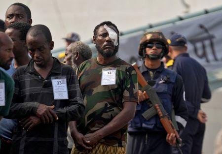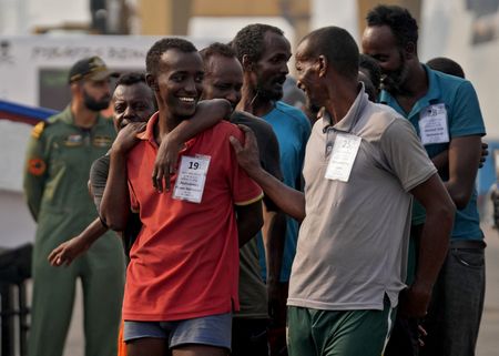 NEW DELHI (Reuters) – The Indian navy handed over 35 Somali pirates to the police in Mumbai on Saturday, after 100 days of anti-piracy operations east of the Red Sea, where piracy has resurfaced for the first time in nearly a decade.