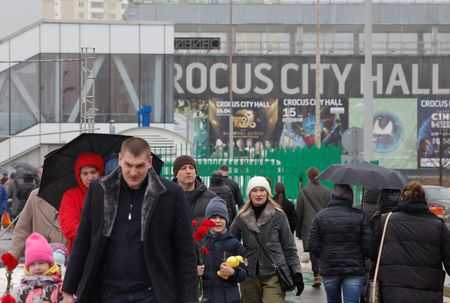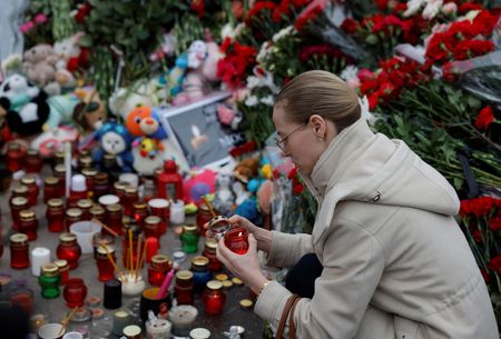 MOSCOW (Reuters) -Russia lowered flags to half-mast on Sunday for a day of mourning and swiftly charged two suspects after gunmen killed scores of people at a concert outside Moscow in the deadliest attack inside Russia for two decades.