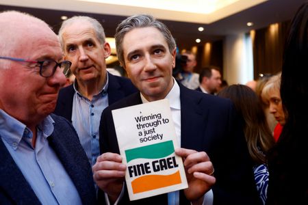 ATHLONE, Ireland (Reuters) -Simon Harris became Irish prime minister in waiting on Sunday, pledging to help small business, focus on law and order and tackle migration after his unopposed election to succeed Leo Varadkar as leader of the governing Fine Gael party.