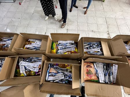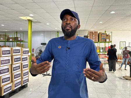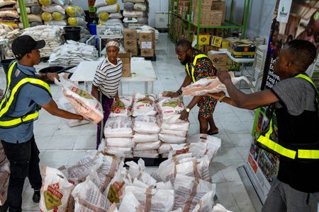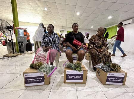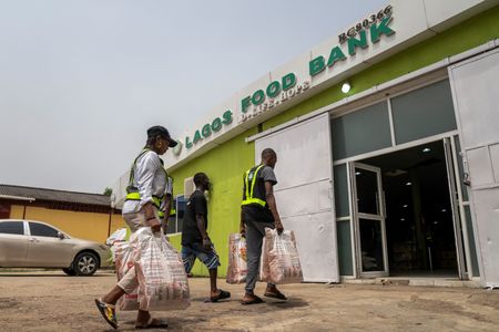 LAGOS (Reuters) – At a warehouse in Nigeria’s commercial capital Lagos, dozens of women patiently wait their turn to receive food handouts. Among them is 68-year-old widow Damilola Salami, who received an invitation to the facility just as she had almost run out of food.
