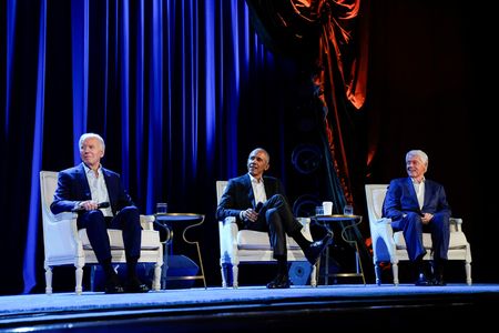 NEW YORK (Reuters) – Former presidents Barack Obama and Bill Clinton dug into an issue that has vexed economists, political strategists and the White House on Thursday – if the U.S.’s fiscal numbers are so good, why are Americans so unhappy about the economy?